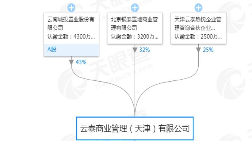 從股權結構43%、32%、25%的配比來看,云泰商業的誕生是基于三方股東共同合作的精神。
